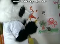 Подсев к обнаженному другу, блондинка взяла в руку его торчащий член, и стала с ним разговаривать. Дамочка что то громко кричала, затем отошла в угол комнаты, и разделась до чулок. После это го присела к стволу и жестко его избила конец.