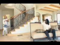 Два чернокожих парня заманили блондинку к себе домой и развели на секс. Девушка принялась старательно сосать внушительных размеров член одного парня, пока другой трахал её мокрую киску в бешеном темпе.