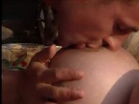 У себя дома парень имеет грудастую блондинку прямо в попу, сидя на диване. Ставит раком и продолжает входить между её мокрых булочек. Девушка стонет от удовольствия.
