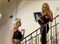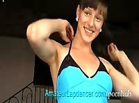 Блондинка нежно гладит себя, в ожидании что ее парень уже по доедет. Парню очень нравится смотреть на девушку, он ее гладит и возбуждает.