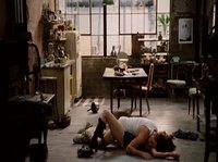 Прижавшись к стене, молодуха уцепилась за трусики и потащила их вниз. Скромница показала краешек попки, потом обернулась и стала снимать лифчик. Слегка сжимая маленькие груди, проказница принялась скромно позировать.