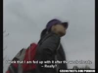 За деньги блондинка показала грудь, и вздрочнула член незнакомца
