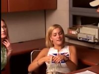 Две пьяные подруги уложили парня на кресле и начали трахать его по очереди. Когда они кончили, они начали сосать его член чтобы доставить ему так же удовольствий.
