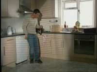 Покружившись голышом у стального шеста, молодая телочка встала рачком и позволила парню полизать дырочки. Через несколько минут возбужденный самец связал подругу, потискал прищепками дойки и жестко выебал.