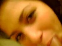 Милашка робко трогала себя в районе киски и одновременно снимала лифчик. За ней наблюдал парень, позвав ее к поближе, получил минет и возможность кончить на лицо.