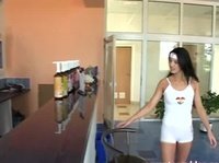 Девушка в сексуальном белье показывает на что она способна. Крошка заходит по сиськи в воду, поднимает вверх руки. В итоге мы видим множество крутых фоток обнаженной мамки.