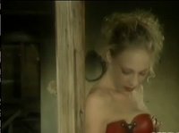 Довольно спортивная брюнетка ласкает своё тело перед камерой и прикрывается футбольными мячиками. Затем она сняла свои трусики и начала мастурбировать себе.
