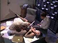 Молоденькую и симпатичную девушку трахают во все щели пара голодных парней. Они засаживают глубоко в неё свои члены, от чего та громко и сладко стонет.